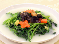 1、将皮蛋和咸蛋蒸15分钟,冷却后去壳切成粒;菠菜洗净后沥干水分; 2、炒锅内倒适量油烧热后放入姜片爆香,随后放入皮蛋和咸蛋粒翻炒几下; 3、将菠菜放入锅内翻炒后调入少许白胡椒粉和盐,并倒入鸡汤一...
