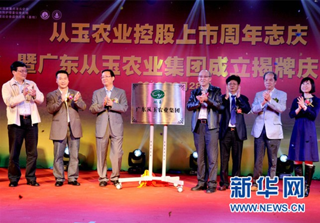 新华网广州3月1日电(记者贾文军)国家级蔬菜龙头企业——从玉农业集团上市周年志庆暨广东从玉农业集团揭牌成立仪式28日晚在广州从化举行。