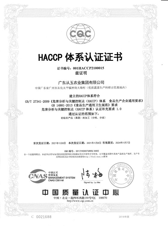 您现在的位置:资讯中心>广东从玉农业集团有限公司获5个体系认证证书
