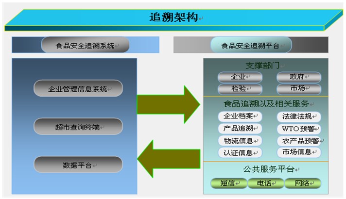 4、农产品溯源综合查询子系统,用户可以根据每个产品的编码通过互联网查询该农产品的全部档案信息,同时也提供通过手机短信查询该产品信息的功能。